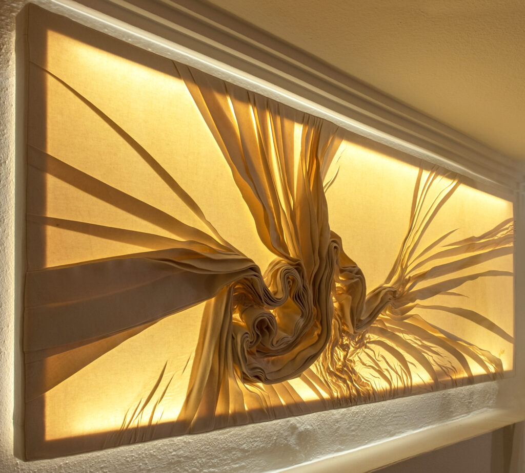 Margit Wimmer-Fröhlich: Energie – Wandbild II, 2025, Stoffstrukturierung, 190 x 90 cm (Margit Isabella Wimmer-Fröhlich)